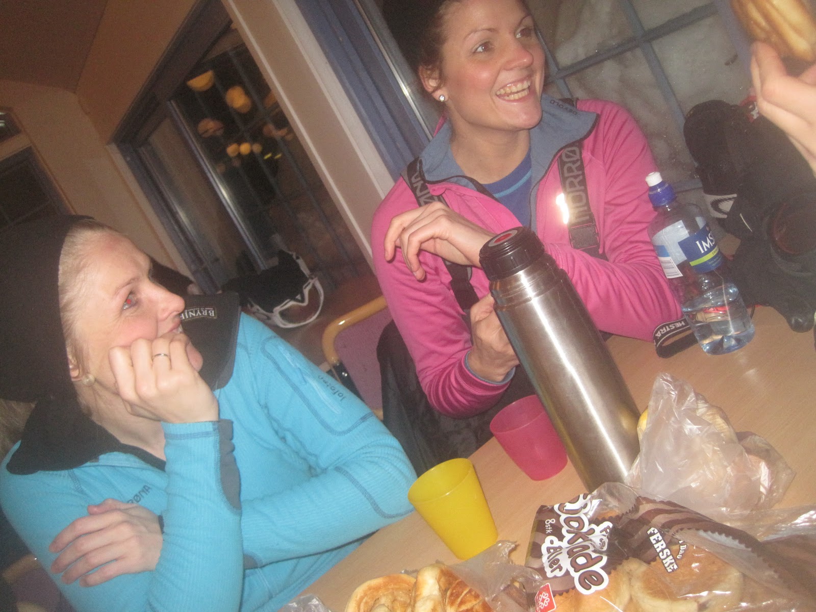 På vei til byen, i ISKALDT vær. Ingrid og Mona prøver å holde varmen med hoppe bilder!